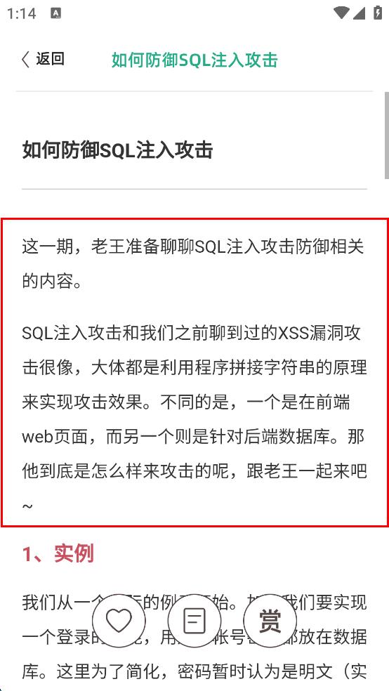 4、進(jìn)入文章頁面后,即可查看如何防御SQL注入攻擊的相關(guān)內(nèi)容。