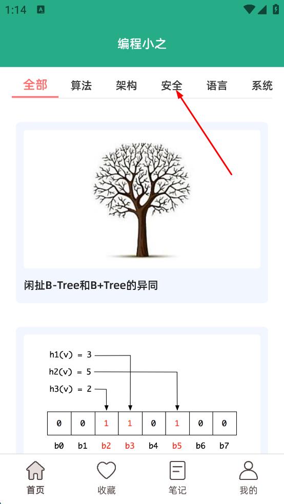 2、進(jìn)入編程小之首頁,在頁面上方的分類欄中,點擊安全選項。