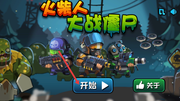 1、在火柴人大戰(zhàn)僵尸游戲啟動(dòng)界面,點(diǎn)擊【開始】按鈕,進(jìn)入游戲主界面。