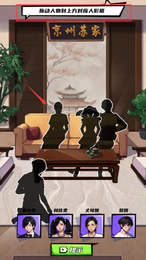 1、點(diǎn)擊拖動(dòng)人物到上方對(duì)應(yīng)人形框里。