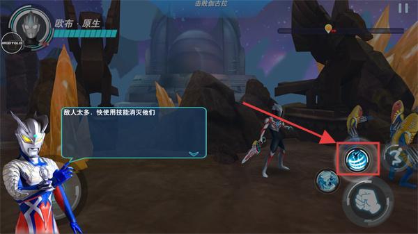 2、當(dāng)怪獸出現(xiàn)時(shí),點(diǎn)擊攻擊按鈕進(jìn)行戰(zhàn)斗,敵人太多時(shí)你可以使用技能消滅他們,每一個(gè)技能都具有強(qiáng)大的威力。