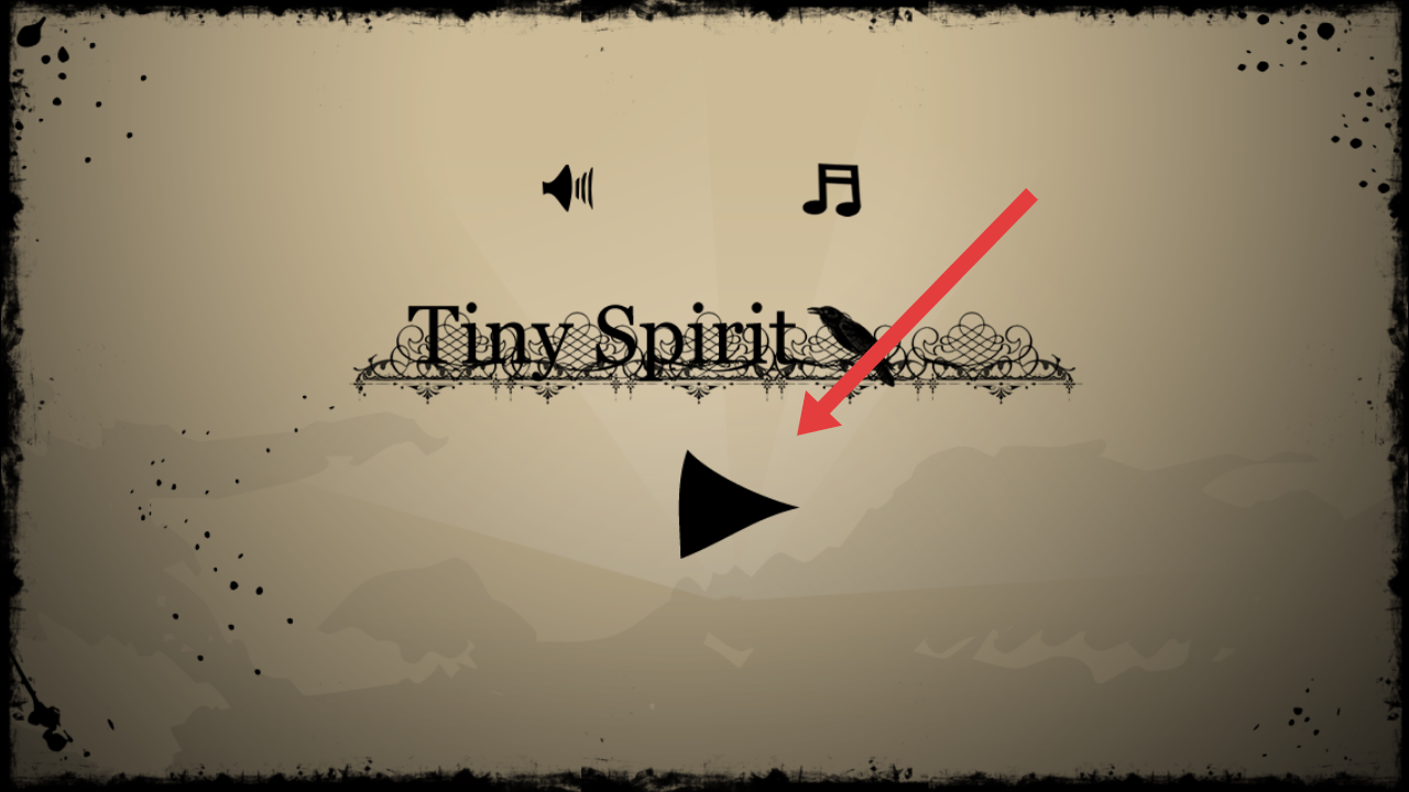 1、進(jìn)入游戲主界面,點擊中間黑色播放按鈕,開啟Tiny Spirit的冒險,可按需調(diào)節(jié)音量、音樂設(shè)置。