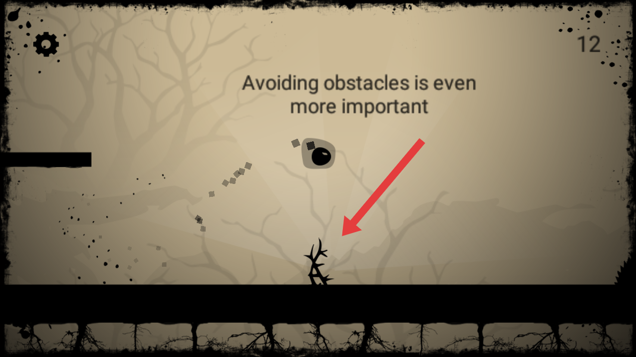 3、挑戰(zhàn)關(guān)卡12,遵循“Avoiding obstacles is even more important”提示,操控小球躲避荊棘等障礙,推進(jìn)游戲。
