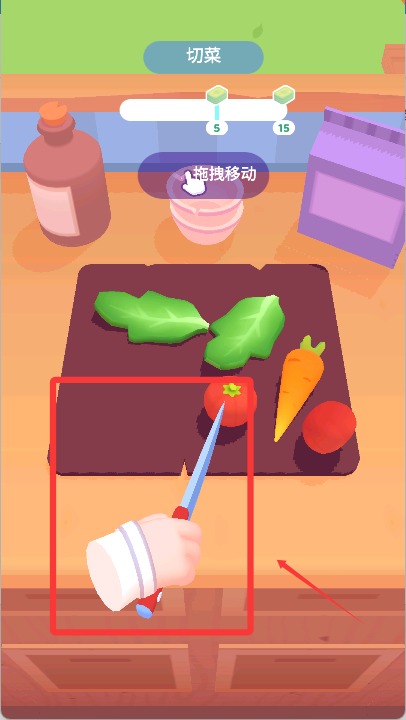 3、然后就可以拖拽移動菜刀,會自動切菜。