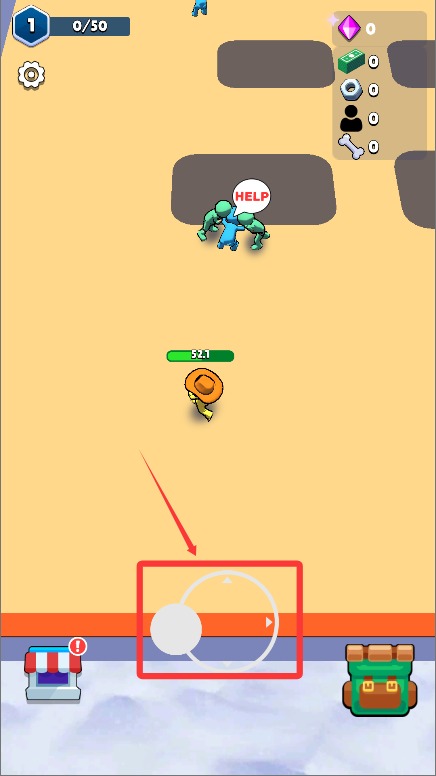1、進入游戲后滑動屏幕下方搖桿即可移動角色。