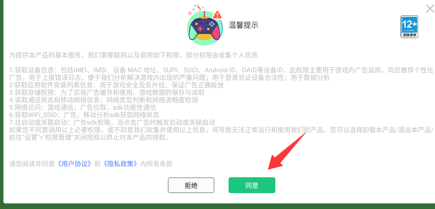 1、點(diǎn)擊溫馨提示紅色箭頭的同意并進(jìn)入。