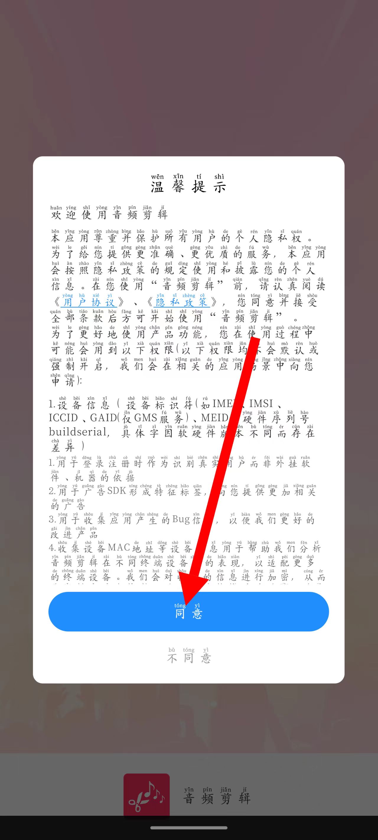 1、打開APP,在彈出的溫馨提示框中,點擊同意按鈕,進入主界面。