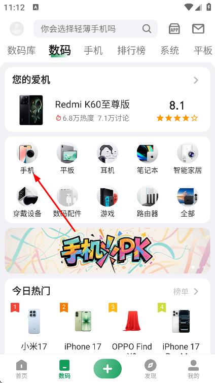 2、在數(shù)碼頁面,點擊手機,進入數(shù)碼分類手機的頁面。