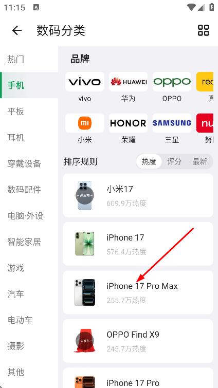 3、在頁面,選擇想要查看的手機型號,進入該手機詳情頁面。