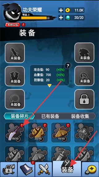 4、在裝備界面,可查看裝備碎片收集情況,收集足夠碎片合成裝備,提升角色的攻擊、血量、防御等屬性,增強(qiáng)整體戰(zhàn)斗能力。