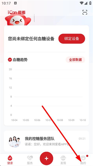 1、在愛看健康的主頁面,點擊底部我的,進(jìn)入個人頁面。