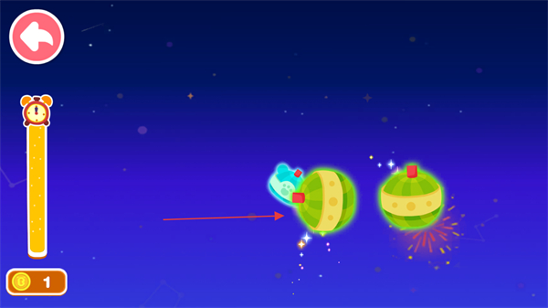 1、進(jìn)入游戲,觀察畫(huà)面中的發(fā)光球體,點(diǎn)擊屏幕發(fā)射道具,如藍(lán)色小玩偶,擊打球體。