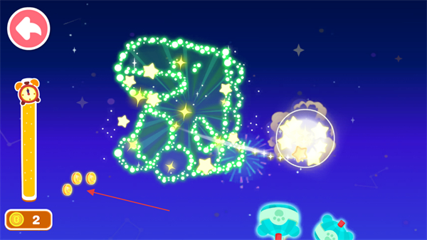 2、成功擊中球體后,球體會(huì)綻放出絢麗的光影效果,同時(shí)會(huì)掉落金幣,記得收集左側(cè)的金幣,金幣數(shù)量顯示在左下方如1。