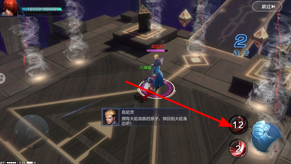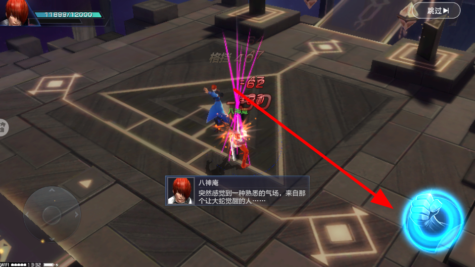 2、點擊右側(cè)拳形按鈕,觸發(fā)普通攻擊,對敵人造成傷害,多次點擊還能形成連招。
