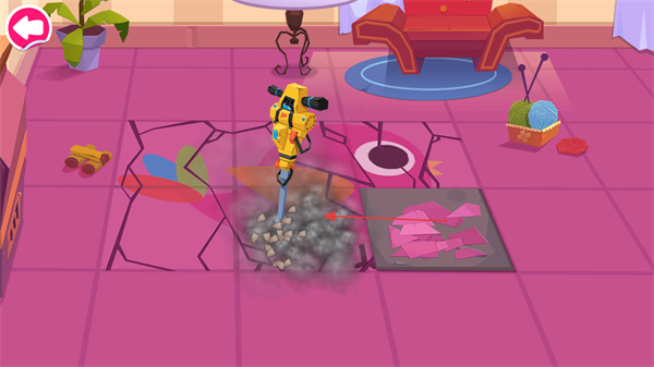 2、使用界面中的工具,如黃色的電鉆,點(diǎn)擊來拆除破損的地板部分。