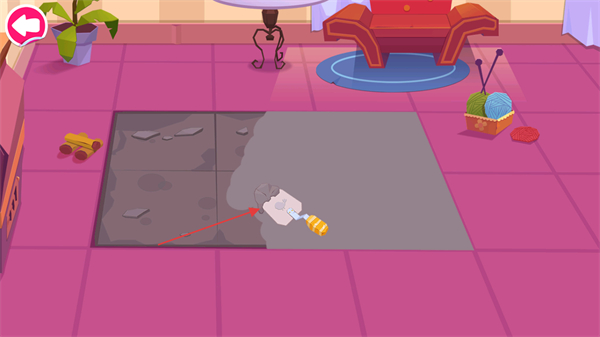1、進(jìn)入游戲場景,操控角色糖糖,看到房屋內(nèi)有需要修理的地方,比如破損的地板,點(diǎn)擊開始修理任務(wù)。
