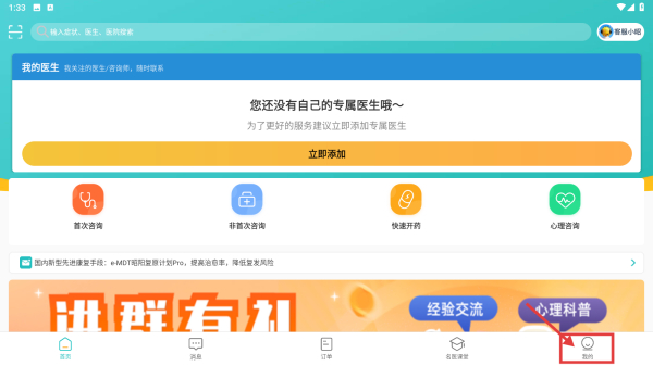 1、打開醫(yī)療類應(yīng)用,點擊底部我的選項,進入個人中心頁面。
