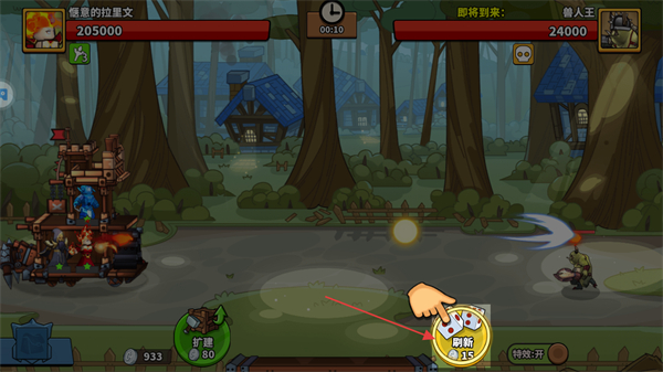 4、點(diǎn)擊刷新按鈕,消耗資源,如10、15,來(lái)更換或獲取新的精靈卡牌,合理調(diào)整防御策略,爭(zhēng)取贏得戰(zhàn)斗勝利。