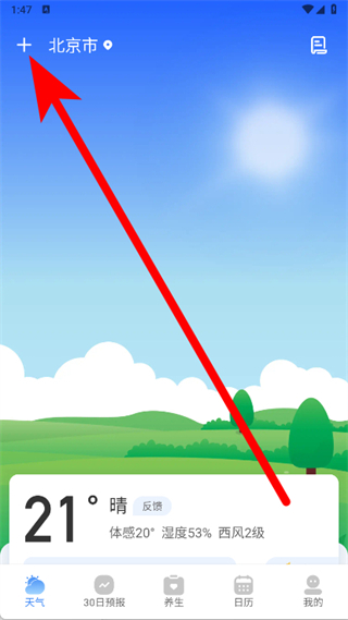 1、打開及時(shí)雨天氣預(yù)報(bào),點(diǎn)擊左上角+。