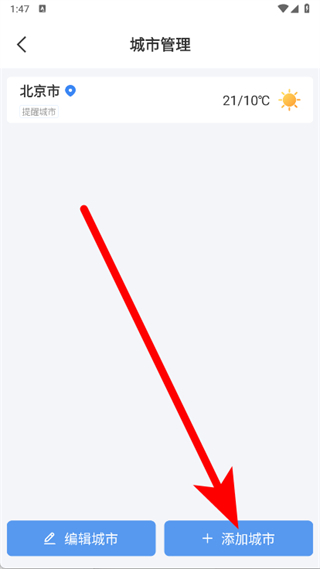 2、在城市管理頁面,點(diǎn)擊+添加城市。