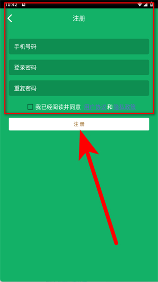 4、填寫手機號碼、登錄密碼等信息,勾選后,點擊注冊,完成注冊。