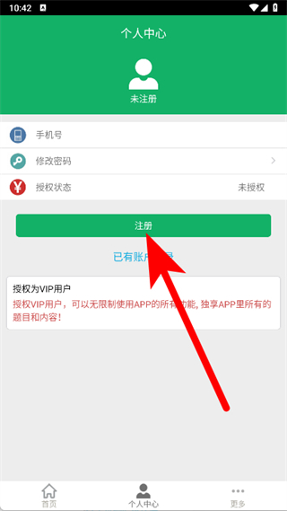 3、在個人中心頁面,點擊注冊。