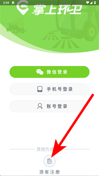 2、進(jìn)入登錄界面后,點(diǎn)擊底部游客注冊選項(xiàng)。