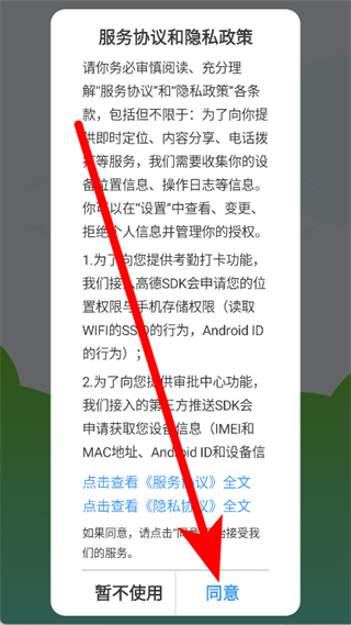 1、打開掌上環(huán)衛(wèi),在彈出的服務(wù)協(xié)議和隱私政策窗口中點(diǎn)擊同意。