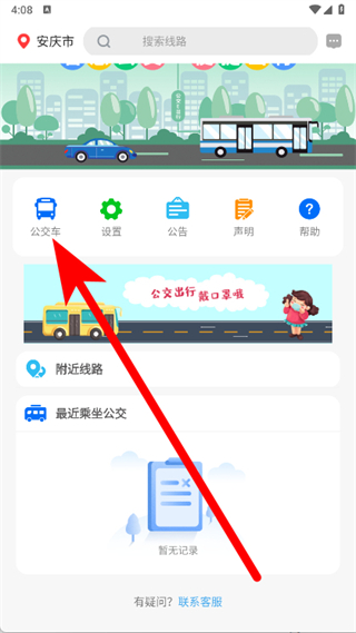 2、城市設(shè)置好后,點擊界面中的公交車選項。