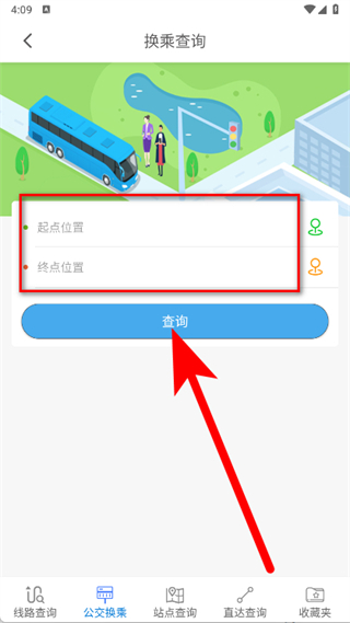 4、填寫起點位置和終點位置,點擊查詢按鈕,就能獲取公交換乘方案。