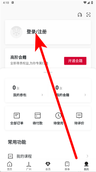 3、在個(gè)人頁面中,點(diǎn)擊登錄注冊(cè)按鈕,在手機(jī)號(hào)登錄注冊(cè)頁面。