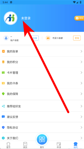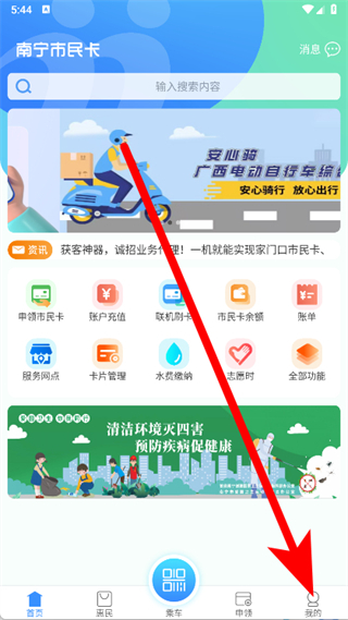1、打開南寧市民卡,點(diǎn)擊底部導(dǎo)航欄最右側(cè)的我的,進(jìn)入個(gè)人中心頁面。