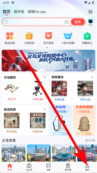 1、打開(kāi)小商品城,點(diǎn)擊底部導(dǎo)航欄最右側(cè)的我的,進(jìn)入個(gè)人中心頁(yè)面。