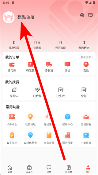 2、在個(gè)人中心頁(yè)面里,找到并點(diǎn)擊登錄注冊(cè)區(qū)域,進(jìn)入登錄注冊(cè)界面。