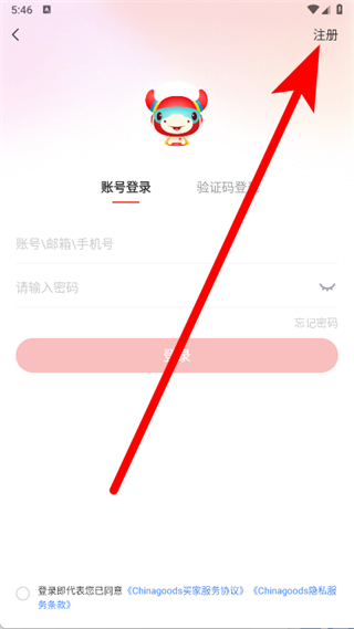 3、進(jìn)入登錄注冊(cè)界面后,點(diǎn)擊右上角的注冊(cè)按鈕,切換到賬號(hào)注冊(cè)頁(yè)面。