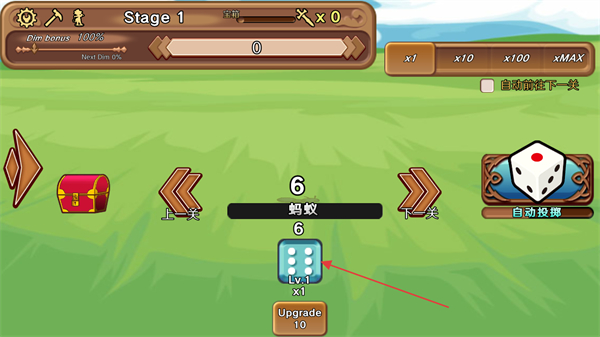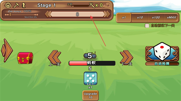2、點(diǎn)擊勇氣骰子,根據(jù)出現(xiàn)的點(diǎn)數(shù),對(duì)“螞蟻”敵人造成相應(yīng)數(shù)值的傷害。