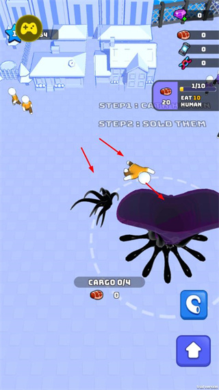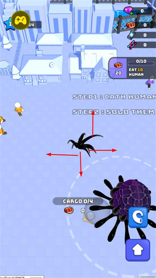 4、在場景中擴大收集范圍,持續(xù)捕捉人類、升級屬性,朝著成為強大蜘蛛收集者的目標(biāo)努力。