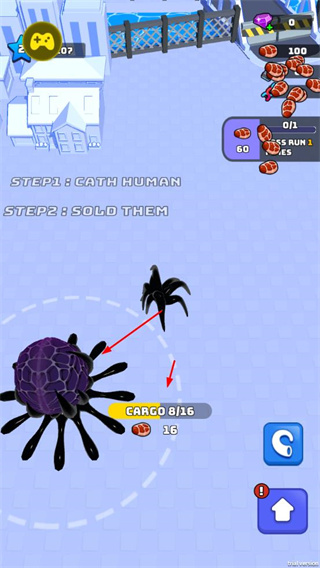 2、操控毒液捕捉人類并裝入cargo中,之后出售人類獲取資源,用于屬性升級(jí)和蜘蛛進(jìn)化。