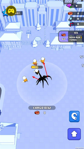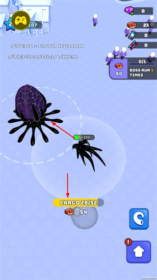 1、操控毒液在雪地城市場景中移動,捕捉人類并裝入cargo中,擴大收集規(guī)模。