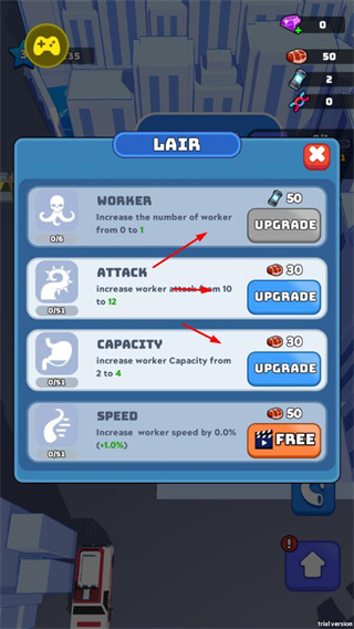 4、提升工人數(shù)量、攻擊、容量、速度等屬性,增強毒液的收集效率和整體性能。