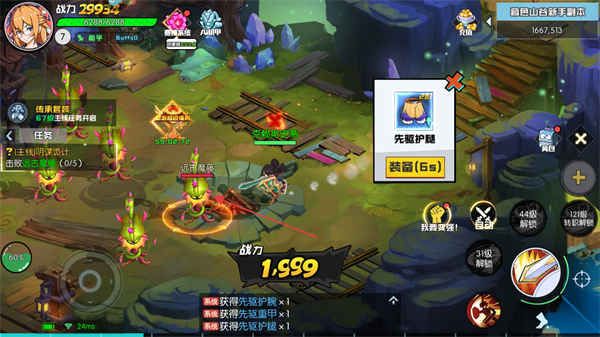 2、戰(zhàn)斗中擊敗怪物,可獲得裝備如先驅(qū)護腿、先驅(qū)護肩和道具獎勵,提升戰(zhàn)力。
