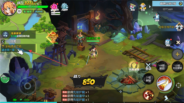 1、跟隨任務(wù)指引,在場景中自動尋路,完成主線任務(wù),如擊敗山谷領(lǐng)主、與NPC對話等。
