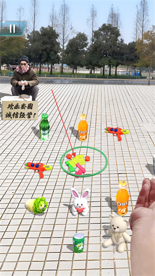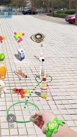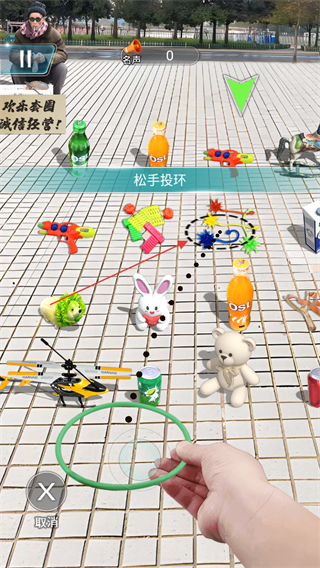 1、觀察場景中各類物品的位置,瞄準目標如玩具、飲料等,調(diào)整投環(huán)的角度和力度。