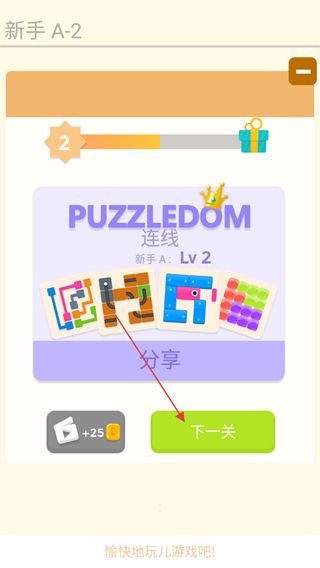 4、通關(guān)后可點(diǎn)擊下一關(guān)繼續(xù)挑戰(zhàn)更復(fù)雜的謎題,同時(shí)還能通過(guò)分享等方式獲取獎(jiǎng)勵(lì)。