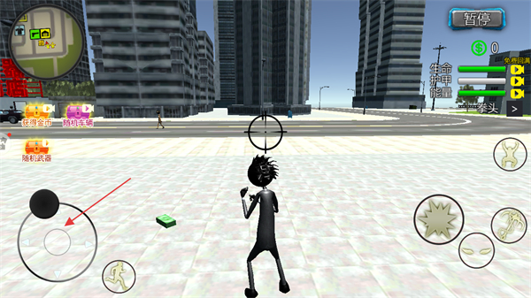 2、通過左側(cè)搖桿控制角色移動,在城市中自由探索。
