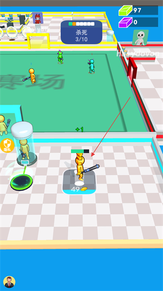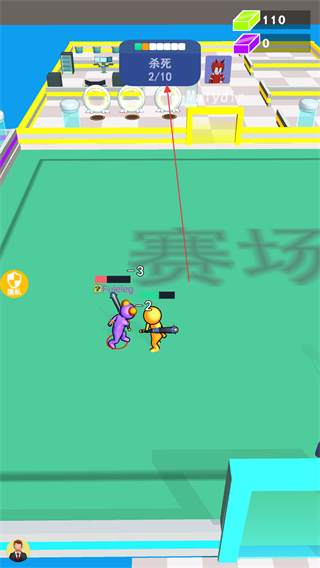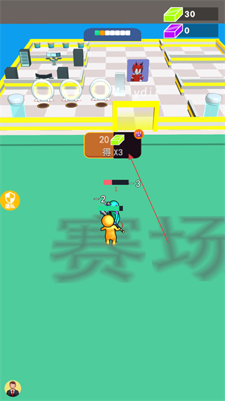 1、操控火柴人攻擊其他對手,擊敗敵人可獲得綠色方塊資源,積累資源提升實力。