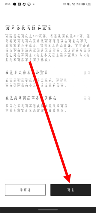 1、打開極氪,在用戶協(xié)議彈窗中,點擊同意。