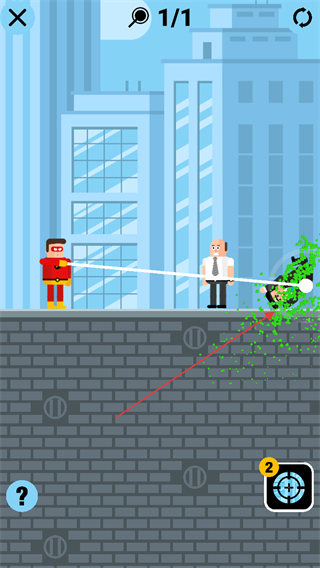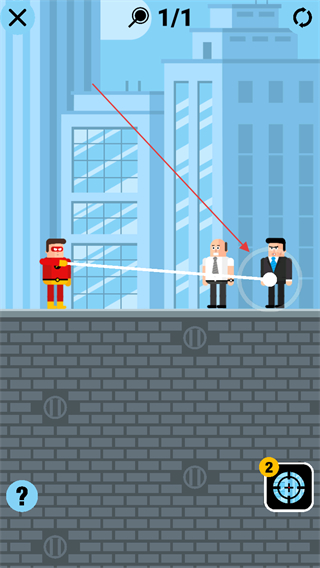 2、畫出直線連接超級英雄和目標(biāo)后,1/1提示完成,觸發(fā)消除進程。