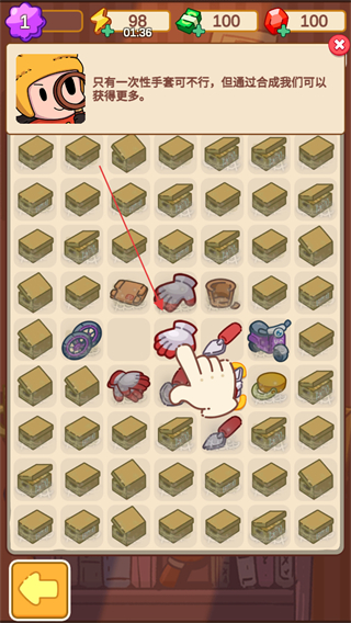 2、單次手套不足,通過合成可獲得更多道具,按提示操作合成。